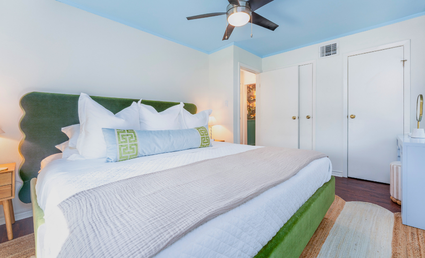 Comfortably sleeping up to 10 guests, this three-bedroom Galveston beach cottage is ideal for families, friends, or multi-generational trips. Each bedroom has its own personality, plush bedding, and high-quality mattresses for a restful night’s sleep.